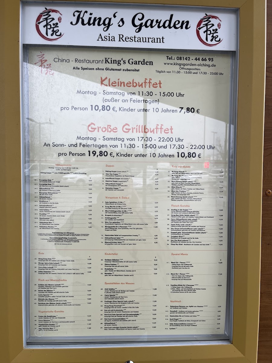 Welcome to King's Garden Restaurant, a delightful culinary haven in Olching, Germany. This Chinese buffet offers an impressive range of high-quality dishes that cater to every palate. With a seating capacity suited for both intimate dinners and larger gatherings, it's advisable to make reservations during peak hours, especially between 18:00 and 19:30, to ensure a table.